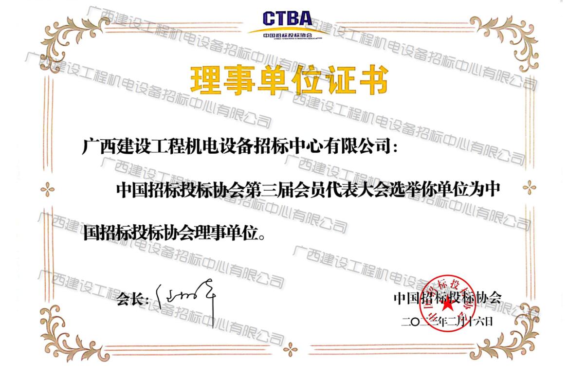 中國(guó)招標(biāo)投標(biāo)協(xié)會(huì)理事單位證書