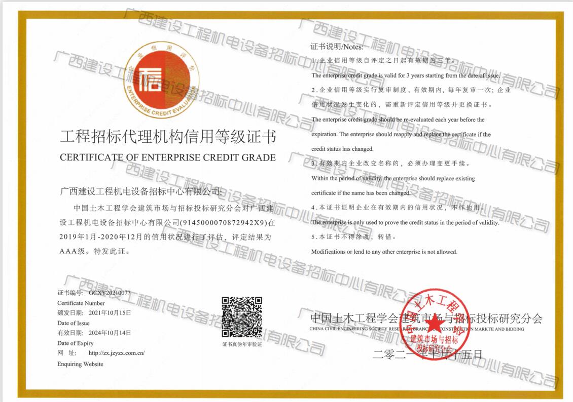 2019-2020年工程招標(biāo)代理機(jī)構(gòu)信用等級AAA級