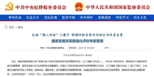 中央紀委國家監(jiān)委相關(guān)同志就《辦法》圍繞打破“熟人評標”小圈子,明確評標專家對評標行為終身負責等方面內(nèi)容進行解讀,內(nèi)容如下(有刪減):
